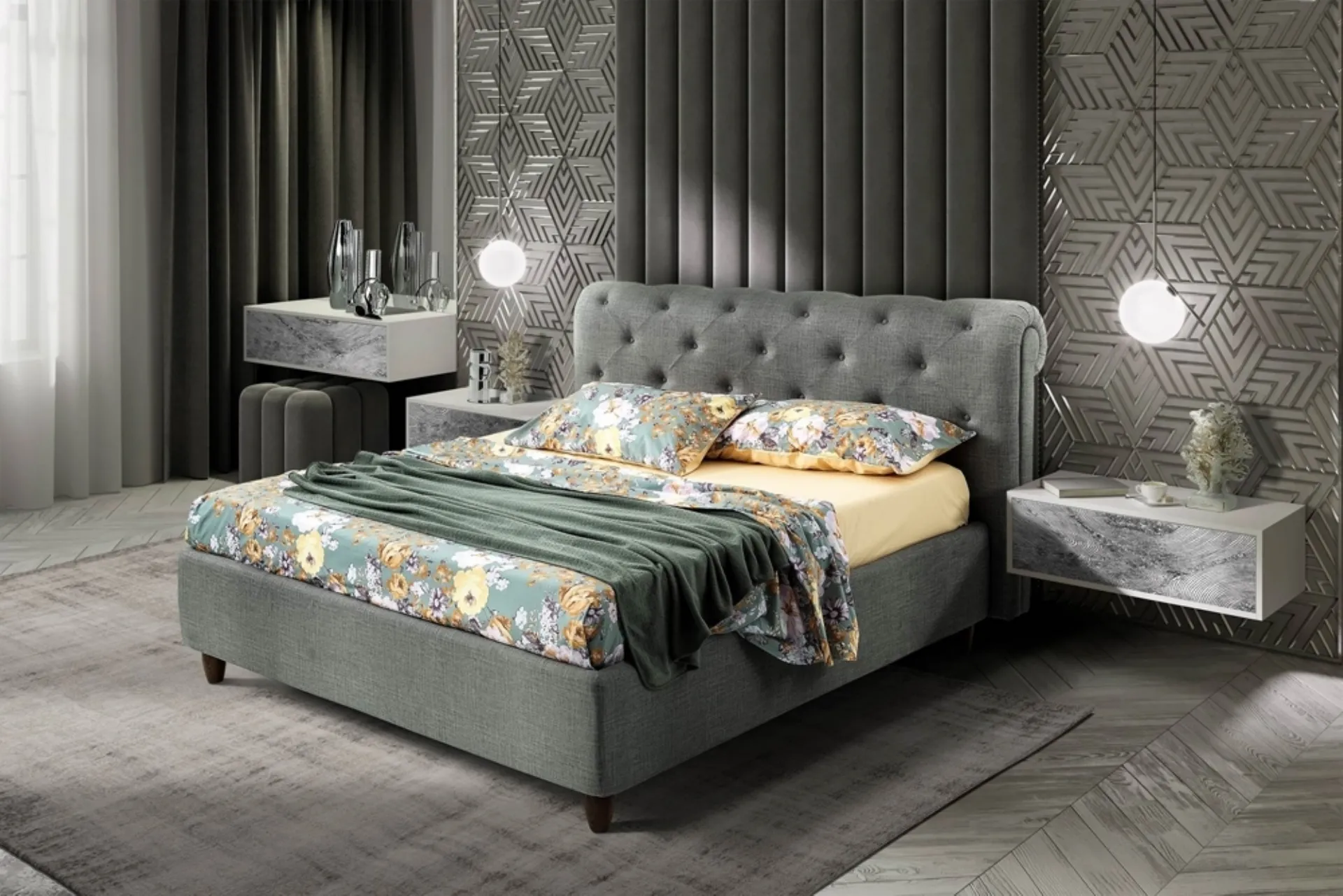 Questa è una proposta di grande classe, che porta con sé tutta la qualità garantita dalla pluriennale professionalità del marchio nel settore. Il Letto con testiera Boheme di Artigianaletti è uno dei prodotti più originali dell'azienda, sinonimo di resistenza nel tempo, qualità delle finiture e un design unico. Per ultimare ottimamente l'arredo della tua camera da letto è di primaria importanza valutare gli abbinamenti del letto con armadi e comodini, elementi accessori e quant'altro: se desideri mobili classici, il modello nell'immagine fa al caso tuo.