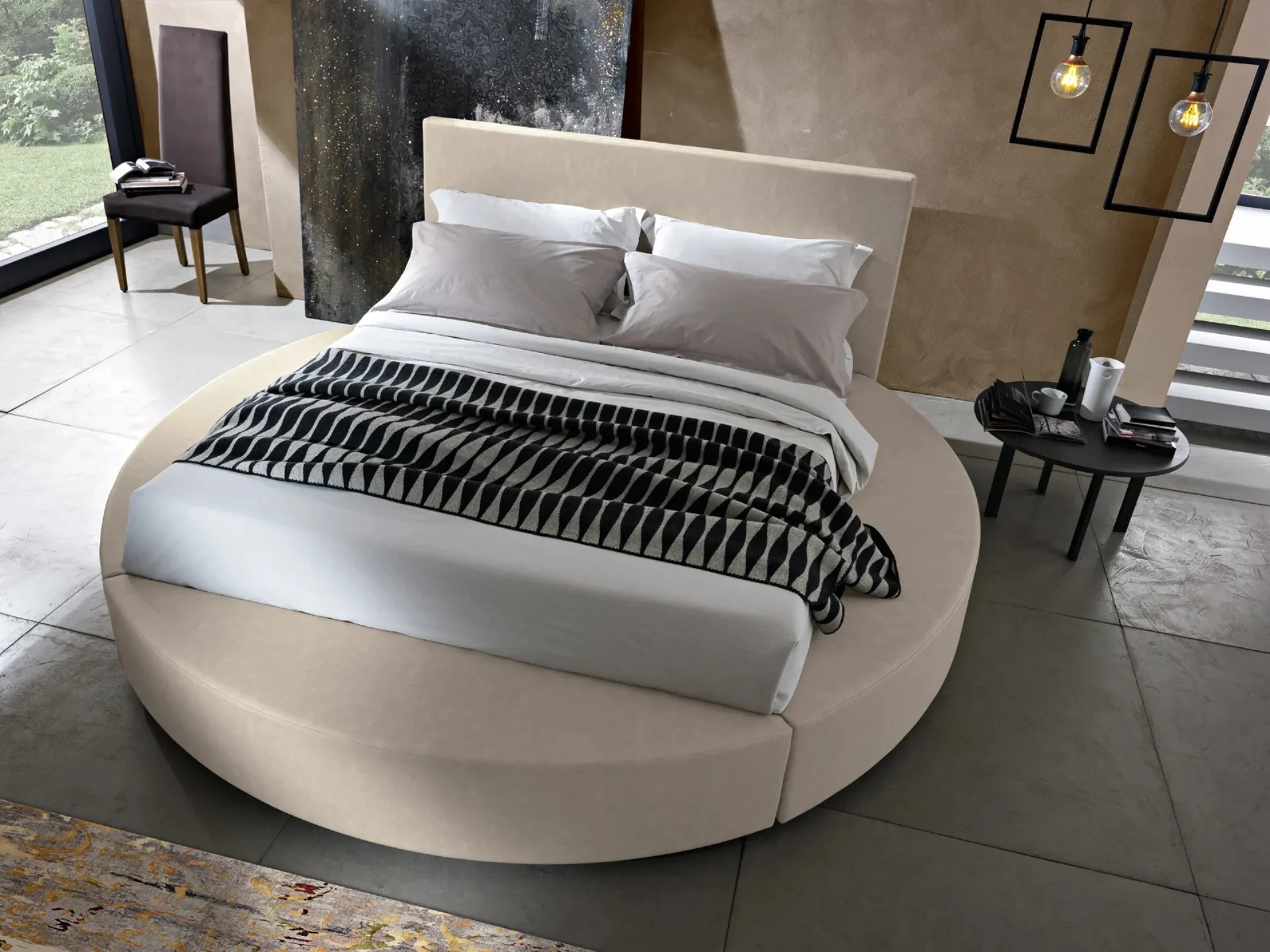 Se desideri ricreare un'ambientazione intima e rilassante, il modello presente in foto fa per te: nella stanza del relax dovrai ricreare un'ambientazione rilassante, per farti ritemprare le energie come meritate. Con il Letto dalla forma rotonda Tondo di Artigianaletti del rinomato marchio, leader del settore, potrai valorizzare la tua camera assicurandoti comfort, praticità e un design pulito. Scopri nel nostro punto vendita una ricca gamma di Letti imbottiti, mobili e complementi per la camera da letto dei migliori brand. Se desideri ammobiliare spazi design, ti aspettiamo per proporti la nostra design di Arredamento Casa per realizzare il tuo concept su misura.