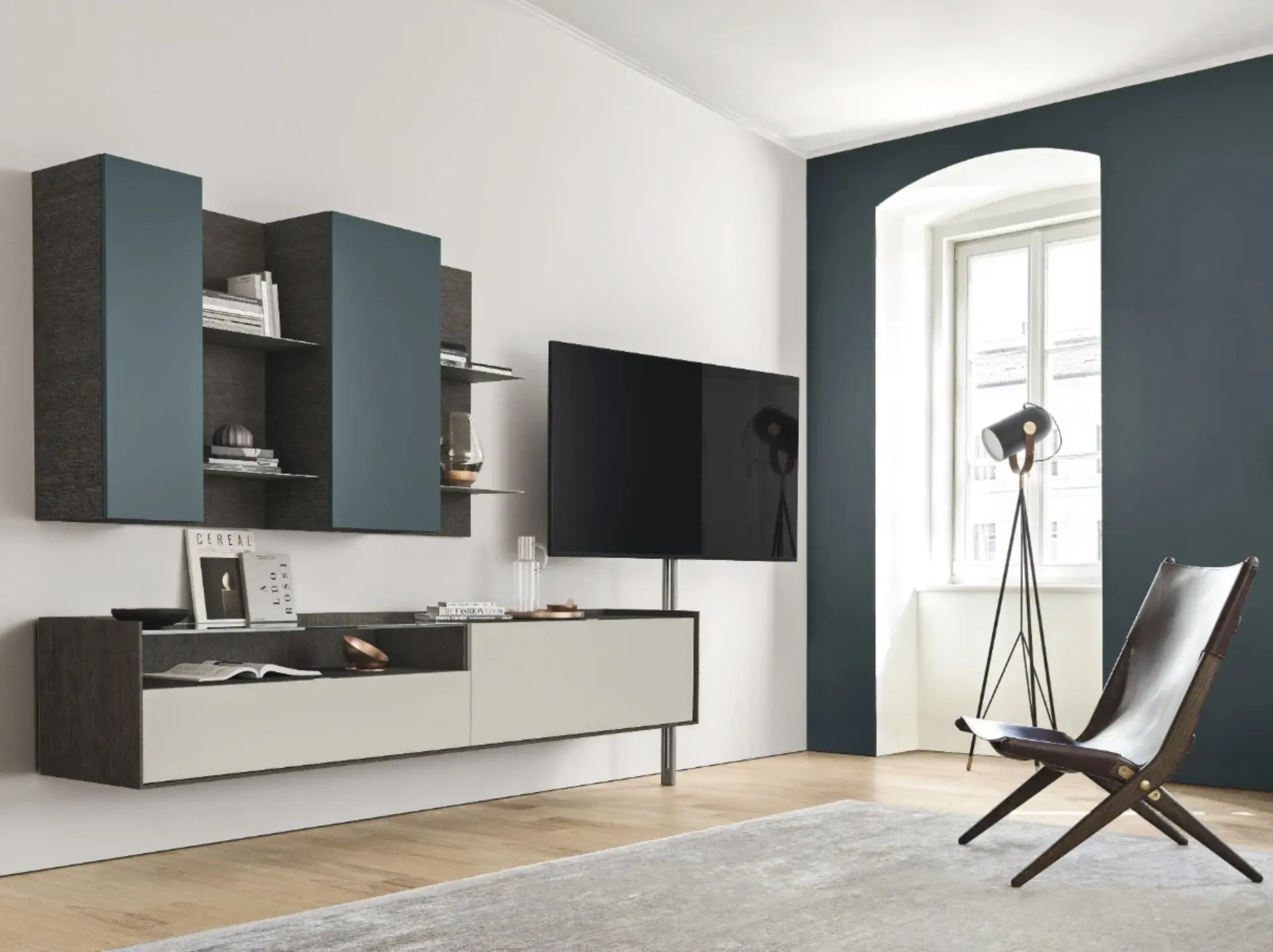 Attraverso un gioco dinamico di accostamenti fra componenti a giorno o vani chiusi, le Pareti Attrezzate moderne arredano il soggiorno usufruendo al meglio di ogni spazio. Le Pareti Attrezzate hanno assunto un posto di primo piano nella zona giorno delle nostre case: sono mobili multifunzionali e salvaspazio sempre realizzabili su misura per te. Questa parete attrezzata è una delle soluzioni dell'azienda e ti permetterà di progettare la zona giorno seguendo le più particolari esigenze abitative.