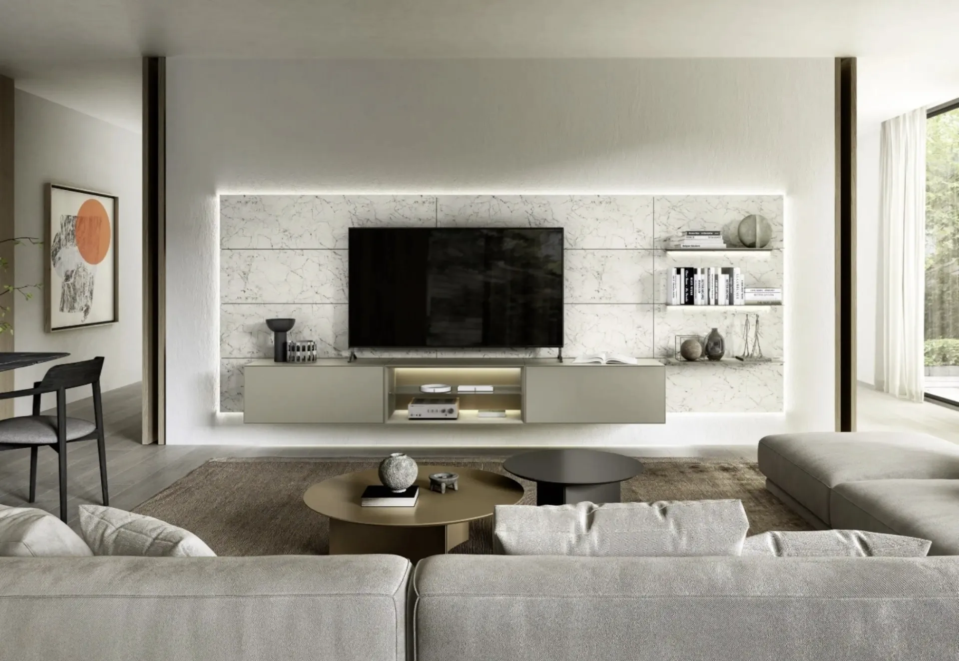 Questa soluzione costituisce tutta l'eccellenza che il marchio assicura grazie a pluriennale competenza e grande passione nel settore dell'arredo e del design. La Parete Attrezzata Domino Boiserie 05 di Sangiacomo in foto, realizzata in laccato opaco, risolve le più particolari esigenze abitative di stile e spazio senza rinunciare alla ricerca estetica. Se cerchi mobili salvaspazio e realizzabili su misura, contattaci e scopri di più sull'Arredamento Casa dei migliori produttori. Anche in un soggiorno non generoso, questo tipo di arredo riesce a ottimizzare gli spazi valorizzando ogni angolo e garantendo massima componibilità tipica delle soluzioni moderne.