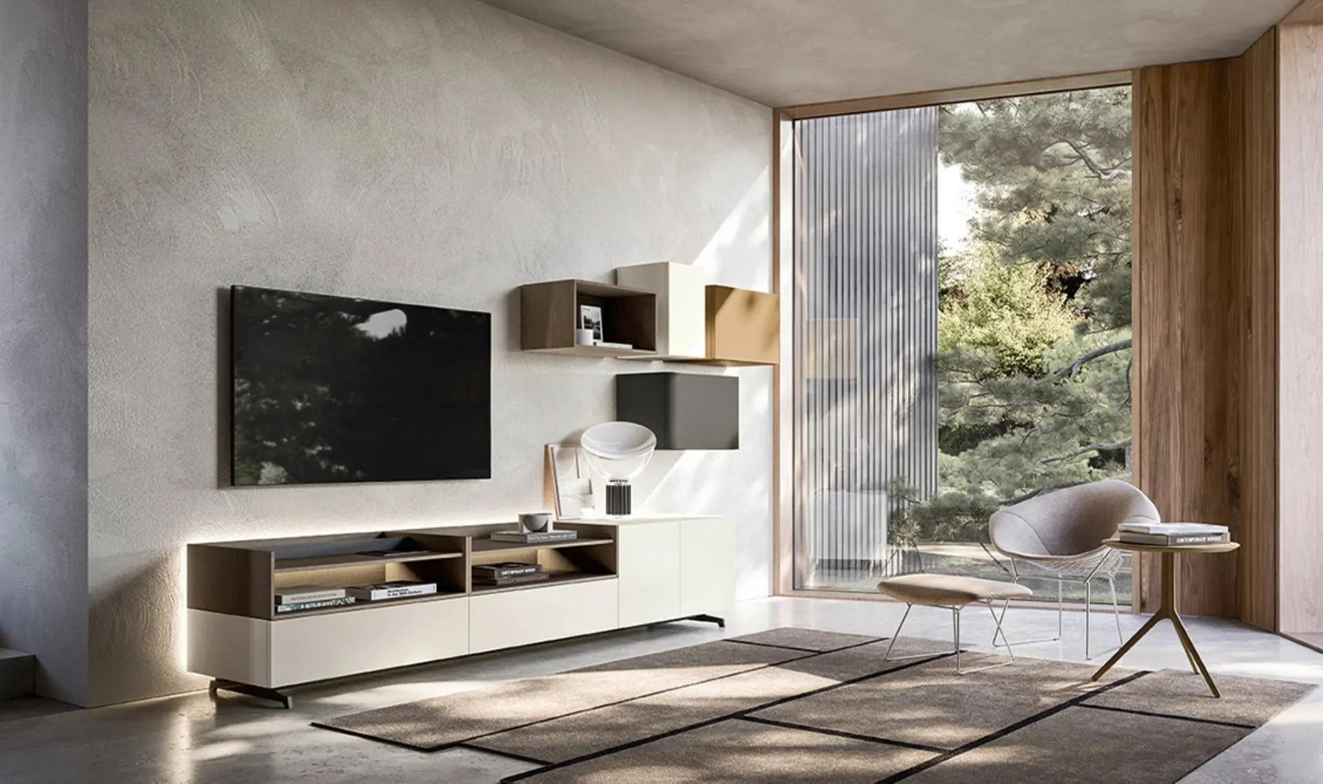 Questa parete attrezzata è una delle soluzioni del marchio e ti consentirà di allestire il soggiorno seguendo le più personali problematiche abitative. Le Pareti Attrezzate hanno assunto un posto fondamentale nella zona giorno delle nostre case: sono arredi plurifunzionali e salvaspazio sempre realizzabili su misura. Attraverso un gioco dinamico di accostamenti fra componenti a giorno o vani chiusi, le Pareti Attrezzate moderne arredano il living sfruttando bene ogni spazio.