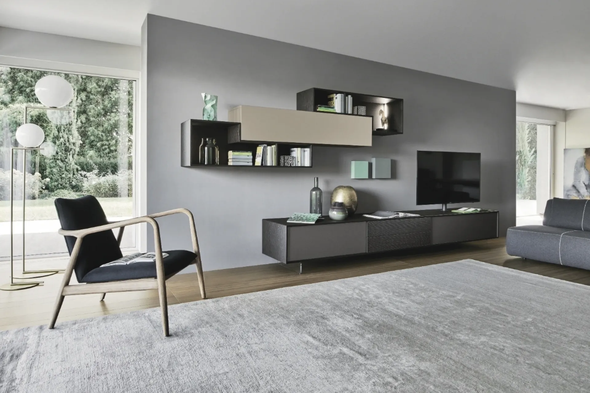 La Parete Attrezzata Lampo Riquadri 033 di Sangiacomo nell'immagine, con finitura in laccato opaco, risolve le più personali esigenze abitative di spazio e stile senza rinunciare alla ricerca stilistica. Anche in un soggiorno abbastanza piccolo, questo tipo di arredo riesce a organizzare al meglio gli spazi sfruttando bene ogni angolo e assicurando componibilità personalizzabile tipica delle soluzioni moderne. Un po’ librerie, un po’ contenitori ed espositori: le Pareti Attrezzate sono ideali per arredare uno spazio operativo e pratico. Questo modello rappresenta tutta l'eccellenza che il marchio assicura grazie a pluriennale esperienza e grande passione nel settore dell'arredo e del design.